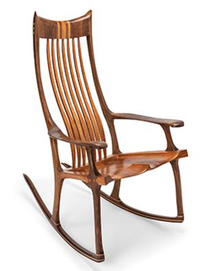 There are no straight lines in the human body. There are few straight lines in my chairs. Sitting in a chair, but especially a rocking chair, is probably the most tactile experience one can have with any type of furniture. It is a full-body experience requiring ergonomic comfort and a pleasant sensation as the whole body is captured.